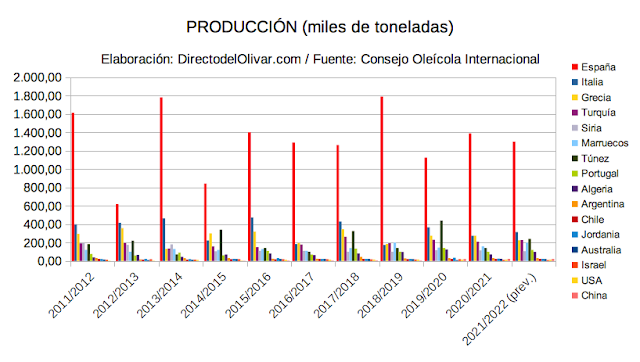 producción de aceite de oliva en todo el mundo.